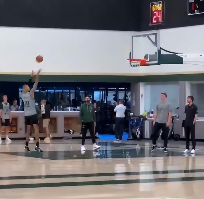 这场比赛首节开场库兹马命中第一个球后就开始了疯狂的打铁、三不沾之旅,这一球他面对威金斯后仰中投直接来了一个中投三不沾,雄鹿替补席都没眼看,现场有嘘声出现。