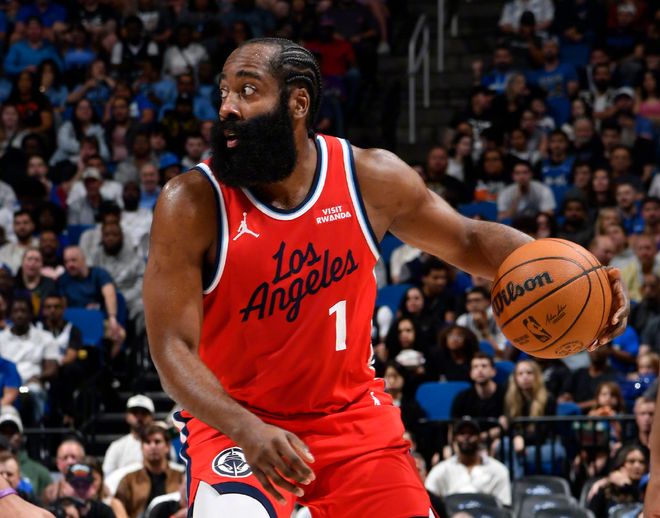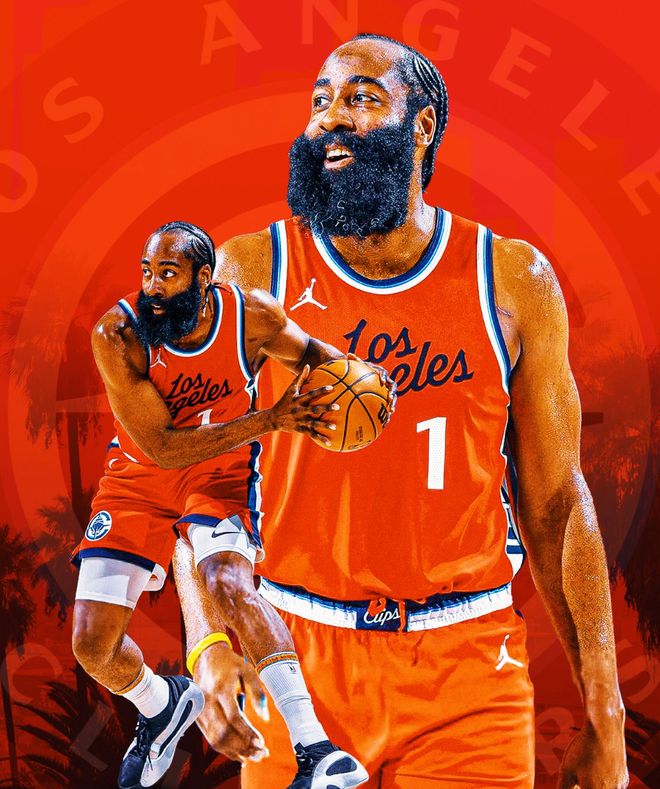 4场狂轰137分 哈登三节31分无奈打卡 快船13人轮换11人得分个位数