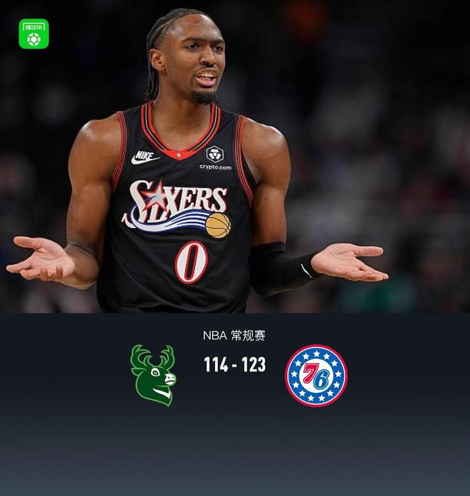 76人加时123-114雄鹿,马克西54+5+9,乔治21分,罗林斯空砍32+6+14